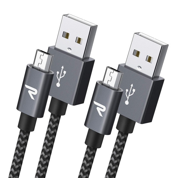 Paquete de 2 cables micro USB RAMPOW - Cargador de nailon trenzado para teléfono celular, carga y sincronización rápidas, cargador micro USB 2.4A para Samsung Galaxy S5/S6/S7, HTC, LG, Sony, PS4, MP3 y más