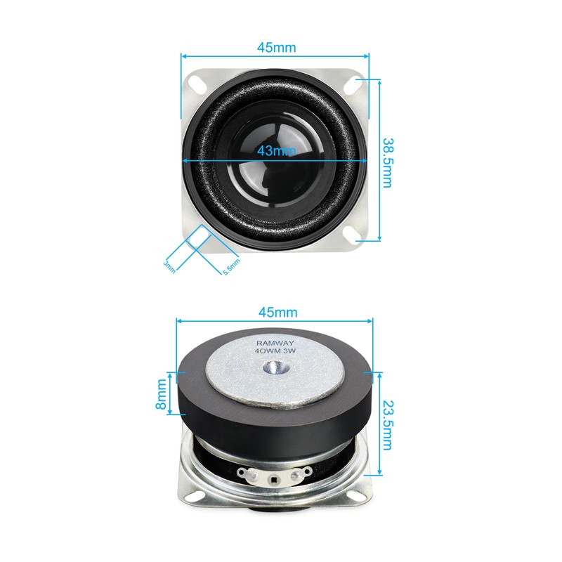 - DIMENSIONS: Compact 45mm x 38.5mm speaker size with 43mm cone diameter, perfect for small audio projects and DIY applications