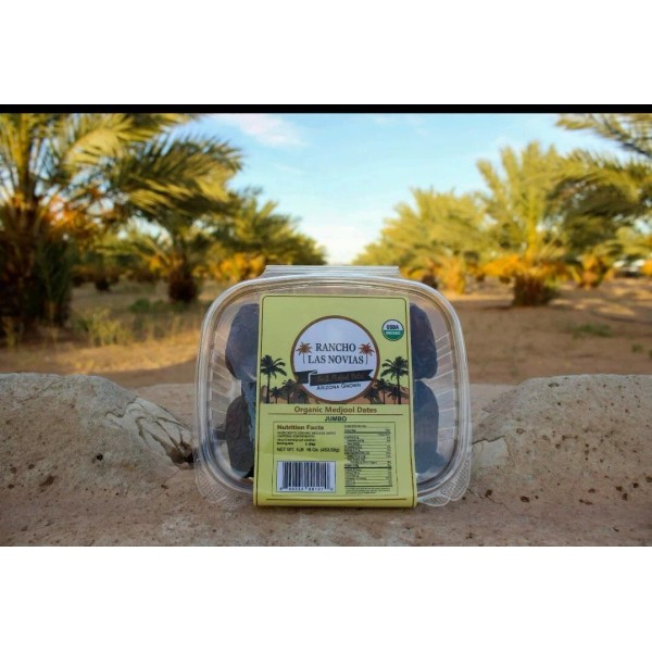 Rancho Las Novias. 2 LB JUMBO PREMIUM ORGANIC MEDJOOL DATES. Arizona's Grown.