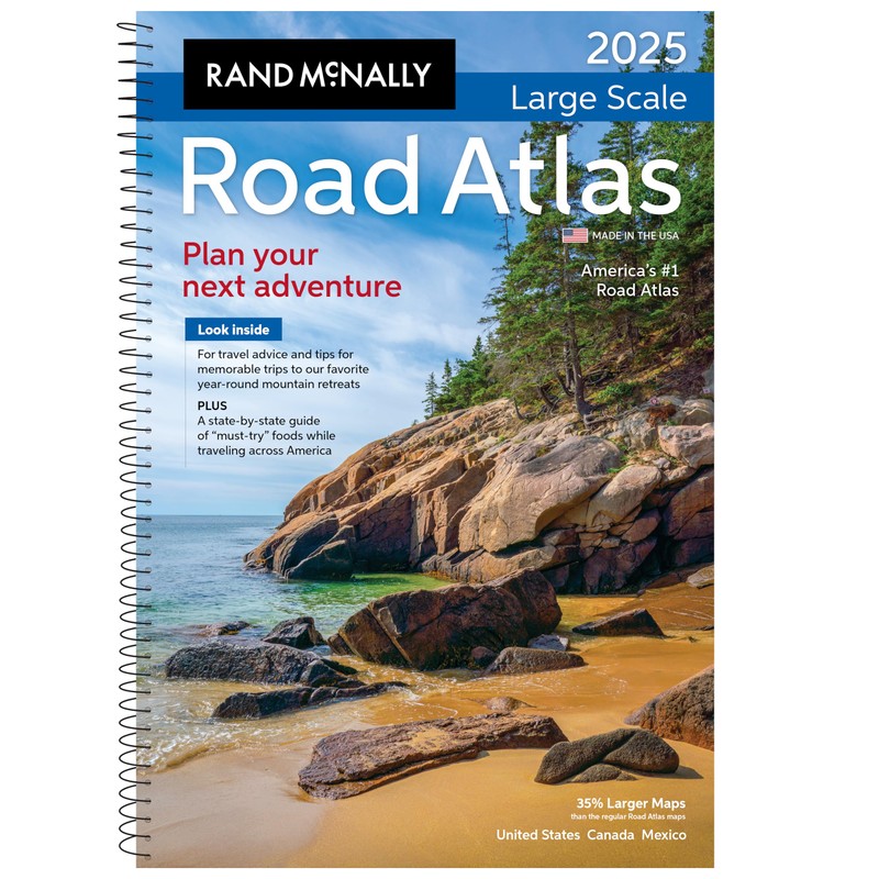 - The Rand McNally Large Scale Road Atlas 2025 is ideal for keeping in your car. This road atlas provides handy views of North American roadways, along with inset maps of more than 375 North American cities.