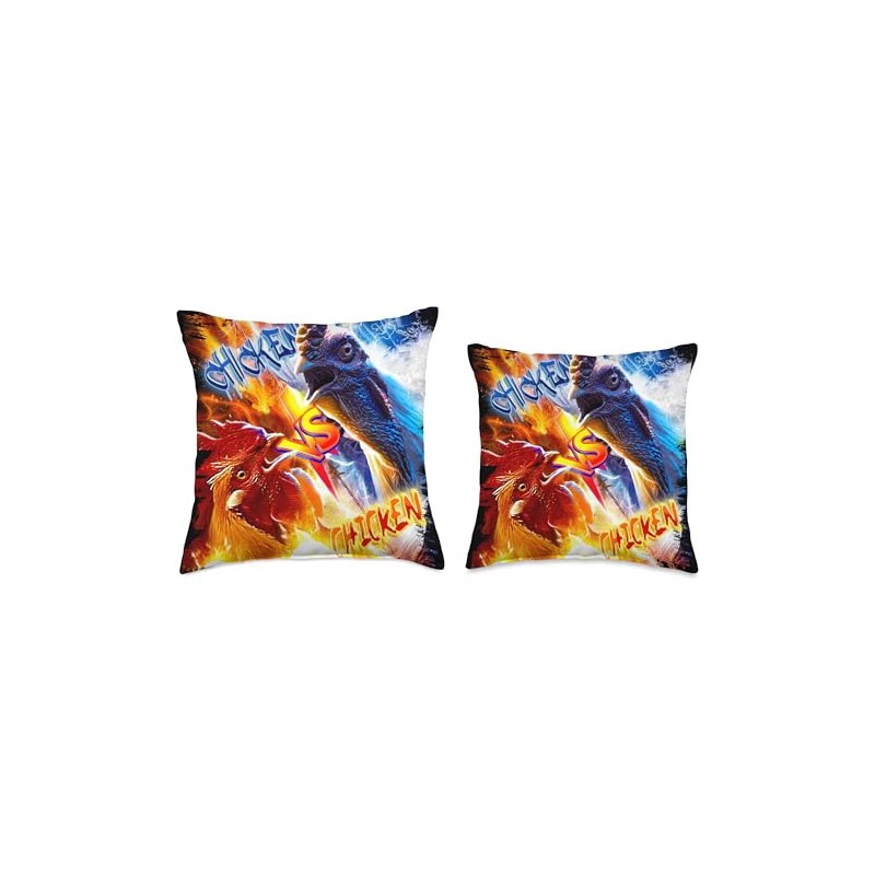 Random Galaxy Fire and Ice vs Chickens, Funny Yin Yang Good Evil Throw Pillow, 16x16, Multicolor