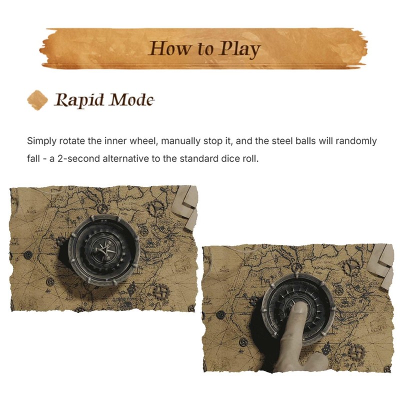 • This unique design requires only one spin.One wheel represents three dice. When the spinning stops, the position of the beads determines the result of the roll, which you can read directly from the wheel. We ensure that the playability of the dice is maintained without losing their fundamental function as dice.Each individual Random dice uses a dual-track design, allowing the dice to rotate in the same or opposite directions when you spin the wheel.
