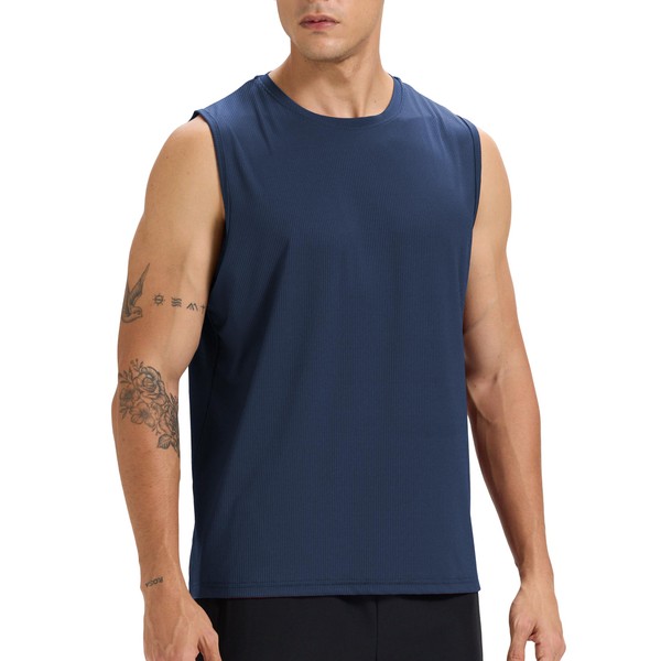 Rane Sports Men's Sleeveless Shirt Workout Training Tank Top Gym Quick-Drying Running Athletic Muscle Shirt Navy Blue0 S