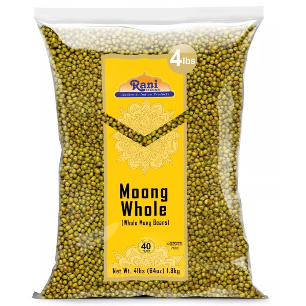 Rani Moong Whole (Ideal for cooking & sprouting, Whole Mung Beans with skin) Lentils Indian 64oz (4lbs) 1.81kg Bulk ~ All Natural | Gluten Friendly | Non-GMO | Kosher | Vegan | Indian Origin