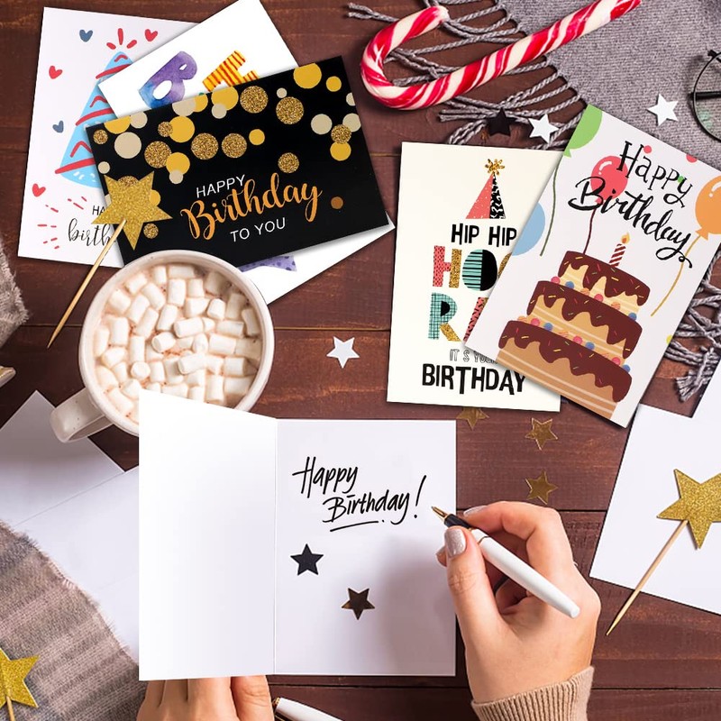 RANJIMA Geburtstagskarten mit Umschlag, 24 Stück Klappkarten Blanko, Grußkarten Geburtstag Glückwunschkarte Set, Birthday Card mit Briefumschläge Postkarten für Weihnachten Geburtstagsgeschenk Freunde
