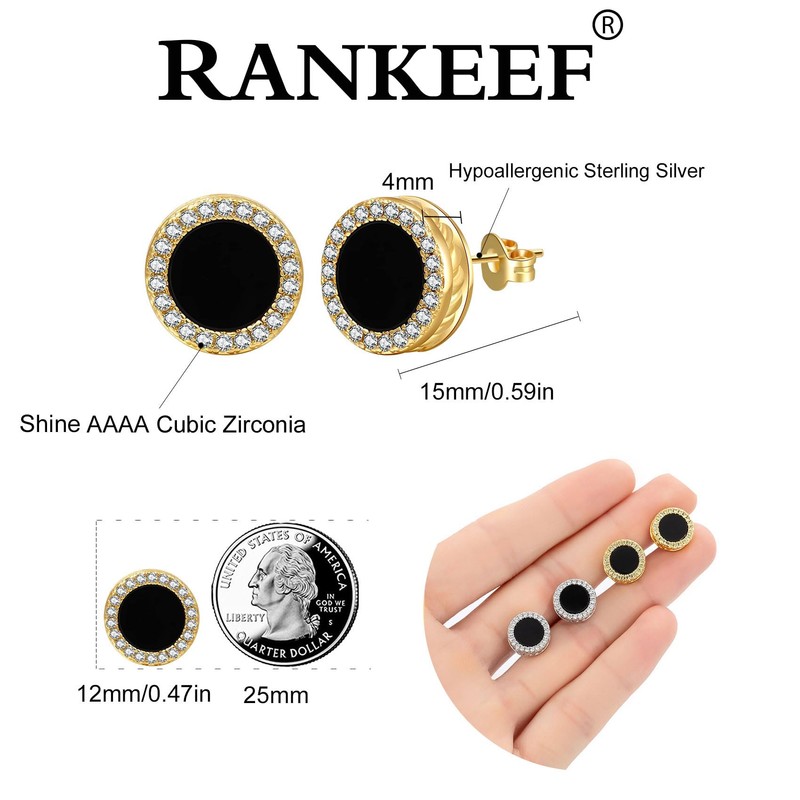 RANKEEF Aretes Para Hombre Iced Out Earring for Men 18K Gold Silver Plated Earring Hypoallergenic Round Screw Back Cubic Zirconia Hip Hop Cross Stud