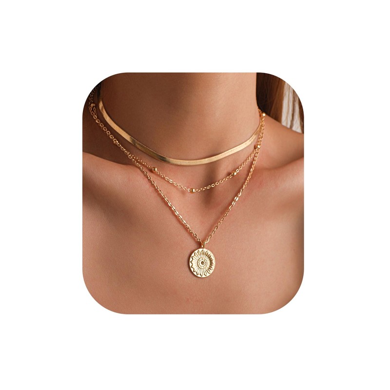 - 【Gold Layered Necklace Size】:choker gold bead necklace length: 15"+2" extender, and round piece necklace length :17.7"+2" extender; Herringbone Chain length: 14"+2" extender.layered necklaces for women has an individual lobster clasp and extension chain; layered necklace can be adjusted to any length, without frequent adjustments, and the gold layered necklace is convenient and comfortable to wear.
