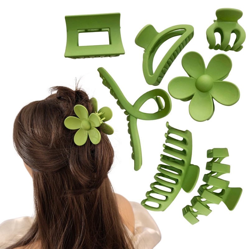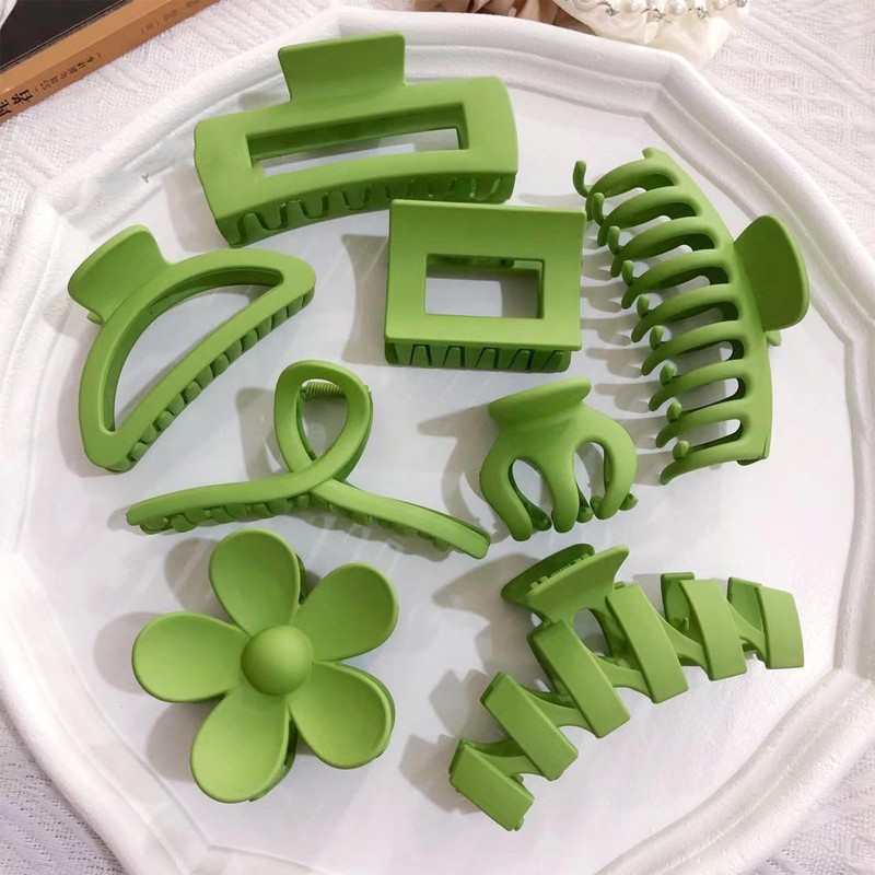 Rannyrena Large Hair Claw Clips Set for Women Thin Thick Curly Hair Multi-Styles Matte Non-slip Hair Clips Strong Hold Hair Accessories (Green)