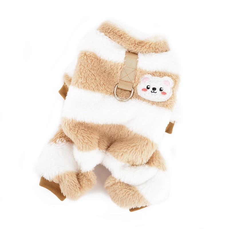 - WARM & COMFORTABLE The dog pajamas is made of double sided fleece with polyester. Dog onesie with legs, super soft and warm, your pet will have a warm winter.