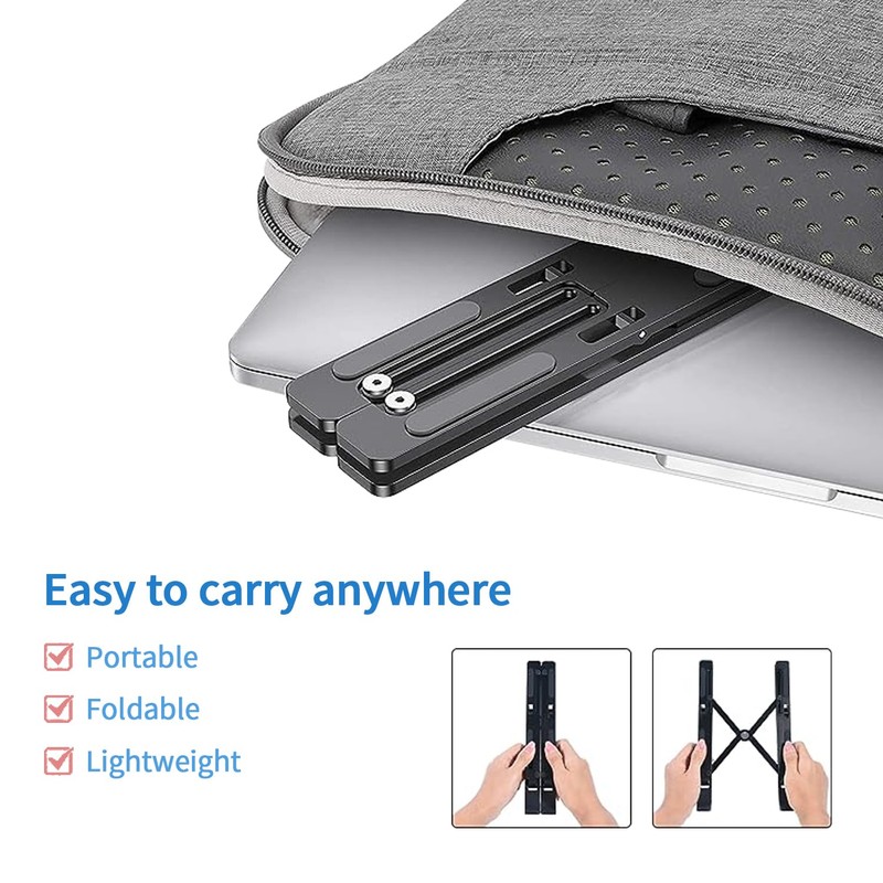 - laptop stand offers 10 easily adjustable pointing points that can be adjusted for different desk heights.Compact size when folded for easy storage and transport.