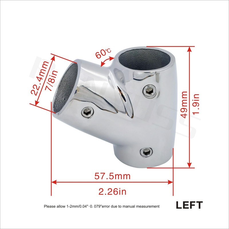RANYUSS Marine Grade Stainless Steel 316 Polished Left and Right Hand Rail Fitting- 60 Degree T/Tee for 7/8in Tube