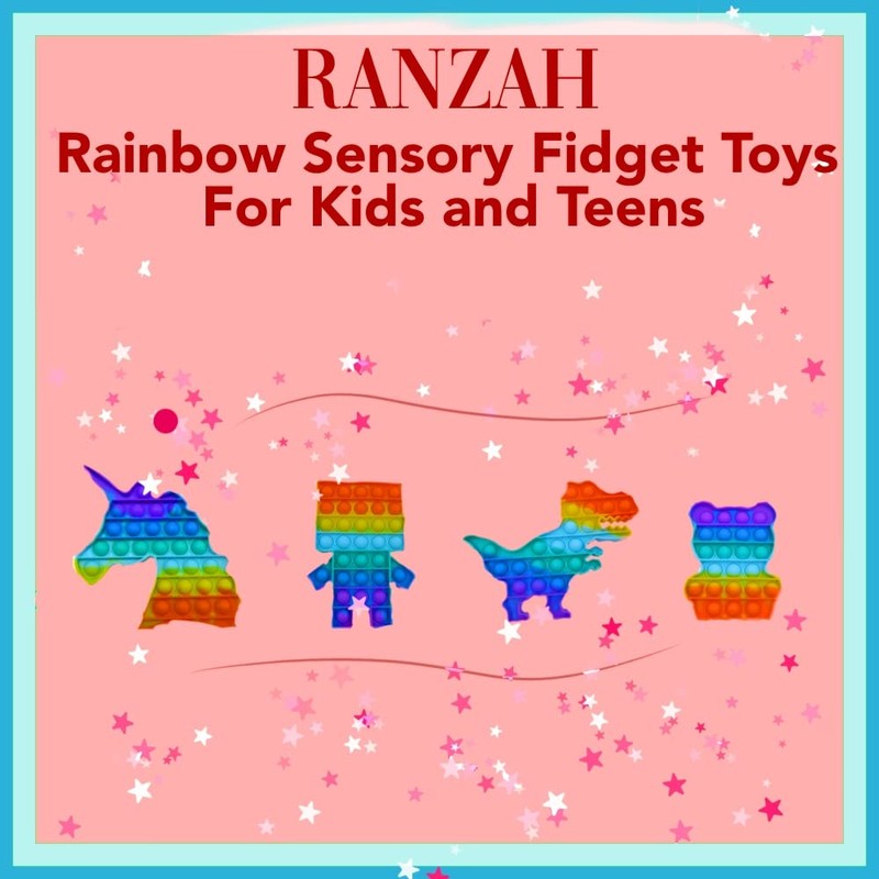 Ranzah Pop Bubble Fidget Toys 4pc Set -Unicorn, Robot, Dinosaur ,Bear - Autism & Special Needs Stress & Anxiety Reliever Pop Rainbow Fidget Toys- Squeeze Sensory Toys For Kids ,Teens & Adults