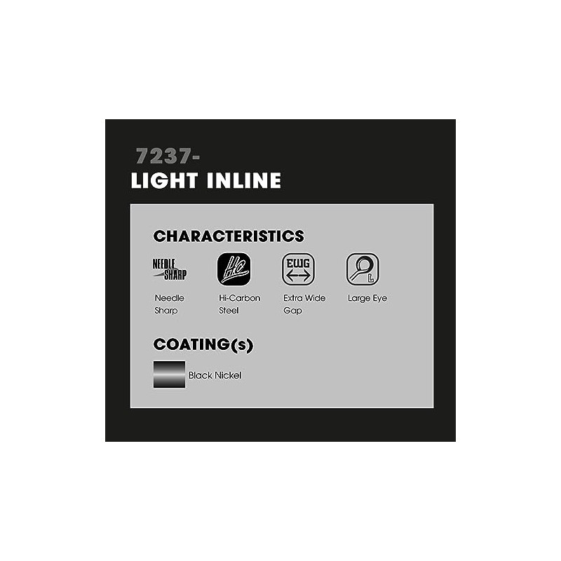 - VMC 7237 Inline Single Hook Needle Point, Extra Wide Gap, Light Wire, Non-Offset, Large Eye, Coastal Black