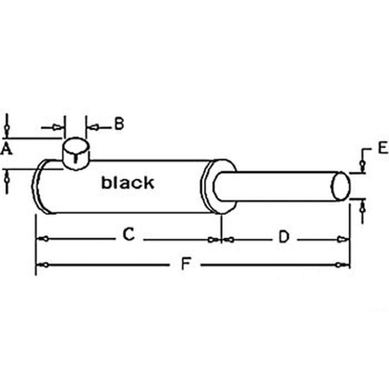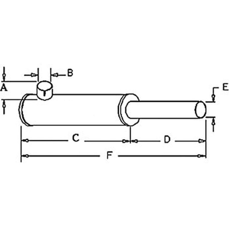 - Dim E (5) E: 2" Outlet O.D., Dim F (6) F: 19" Overall Length