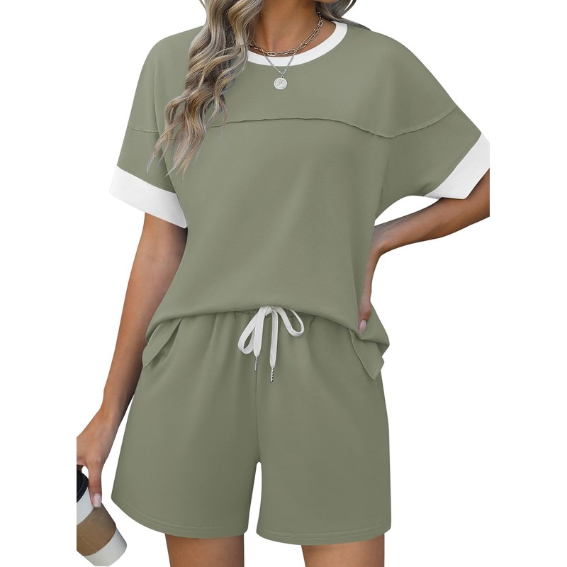 - These two-piece shorts feature oversized short sleeves, a relaxed fit, crew neck shirt and shorts with functional pockets on both sides, perfect for storing small essentials