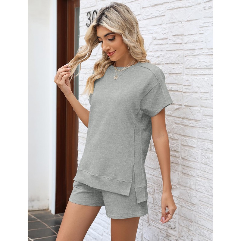 - 【Fashion design】-RAPBIN summer tops adopt a simple and fashionable design. Short-sleeved round neck tops with inverted triangle design at the neckline and side slits. The shorts are high-waisted, with drawstrings and pockets, and the elastic waistband is adjustable to enhance your comfort.