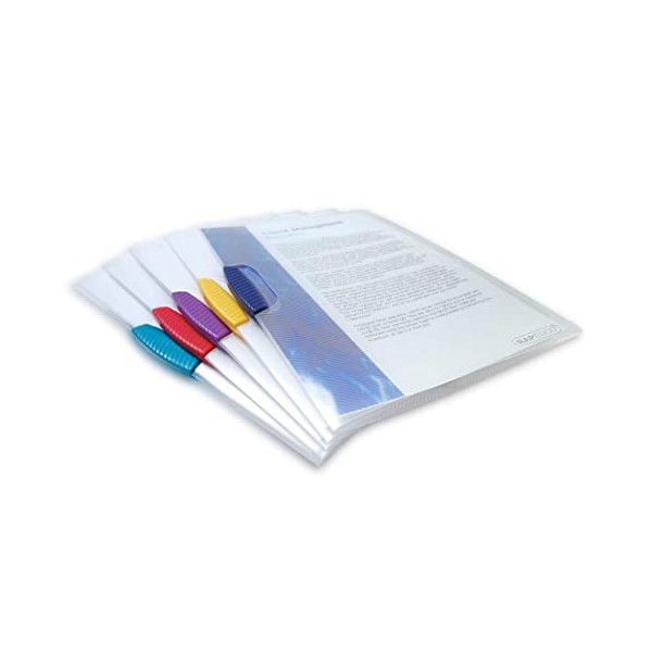 Rapesco 0786 Pivot Clip File, A4, Transparent with Coloured Clips, Pack of 5