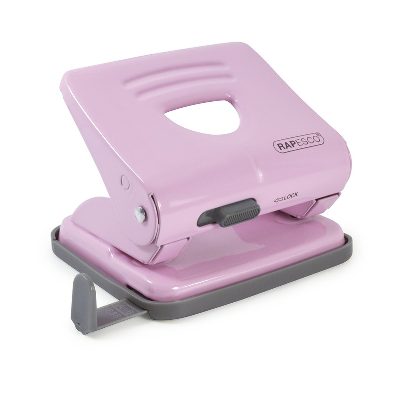 Rapesco 825 Metal Punch comes with tough metal working parts, precision pressed handles, hardened cutter, handle lock-down and metal base fitted with a rubberised flip down confetti tray as standard. Personalisation window allows for easy identification. The two-hole perforator with 25-sheet capacity, makes it apt for many applications.