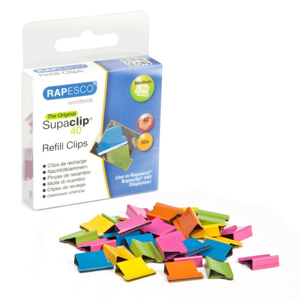 Rapesco RC4050MC Supaclip 40 Refill Clips, Assorted Colours, Pack of 50