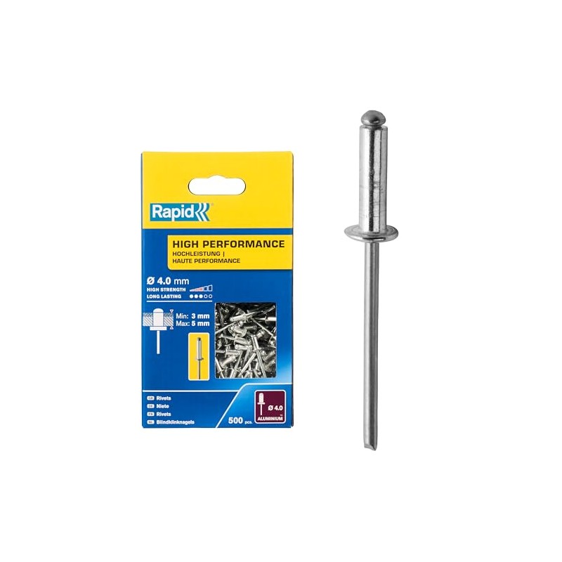 Rapid Blind Rivets Aluminium Universal Diameter 4 mm 2-5 mm Clamping Range Pack of 500 Rivets Bulk Pack for Blind Rivet Pliers