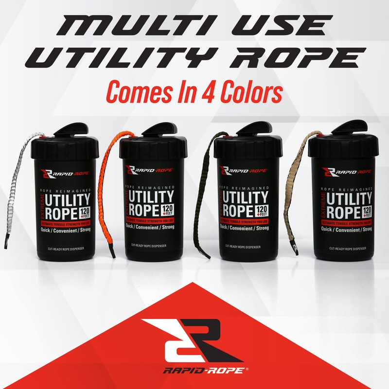 - MULTIPURPOSE AND REUSABLE: For indoor and outdoor use. Rapid Rope is perfect for camping supplies, backpacking gear, emergency kits, tie down rope, the possibilities are endless! The canister is reusable. When you run out of rope, just add a Rapid Rope refill, and you’re good-to-go.