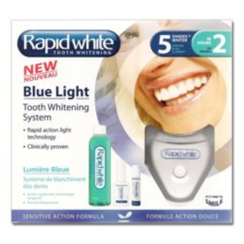 - Blue Light Kit Rapid White is a gentle treatment, combined with a blue light that whitens teeth