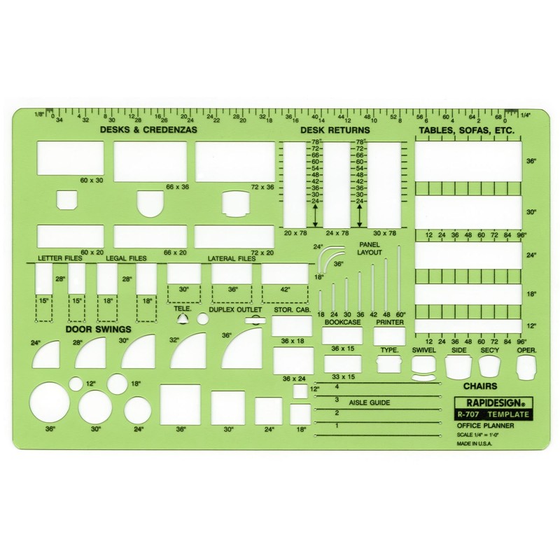 Rapidesign Office Planner Template, 1/4 Inch Scale, 1 Each (R707)