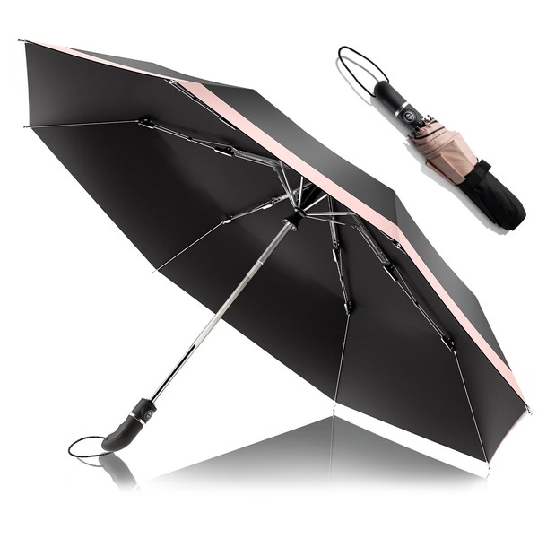 Raplu Large Durable Lightweight Folding Umbrella, Parasol, One Touch, Light Shading for Men and Women, black pink
