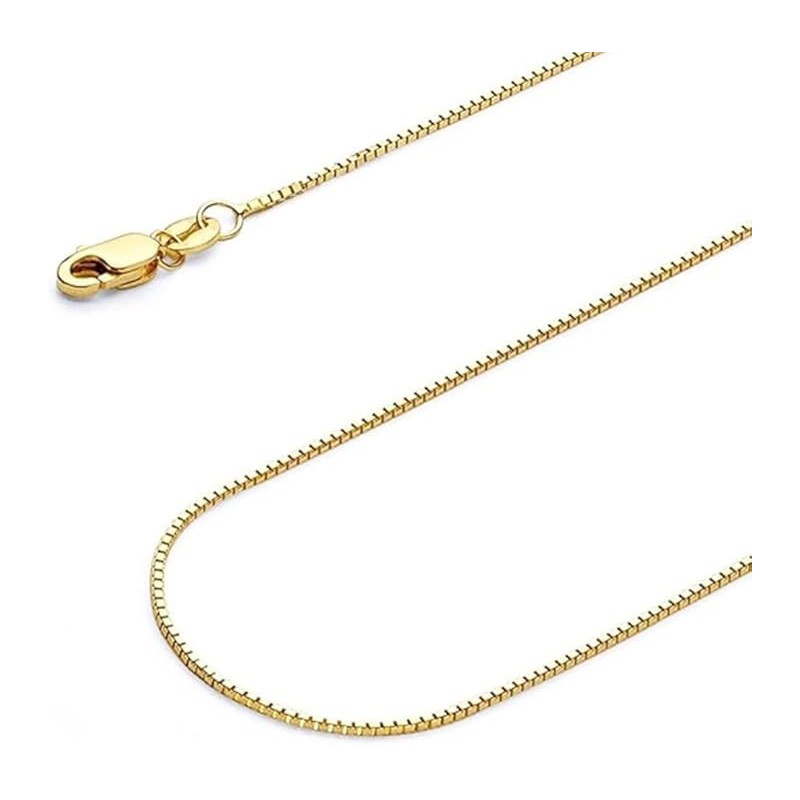 rapmoven 14K Yellow Gold Solid Box Link Chain 0.7mm Necklace with Lobster Claw Clasp, Jewelry Gift for Women or Men, 16 inch