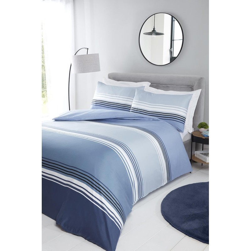 Rapport Home Blue Striped Microfibre Single Duvet Cover Set Soft Chicago Non iron Bedding Set