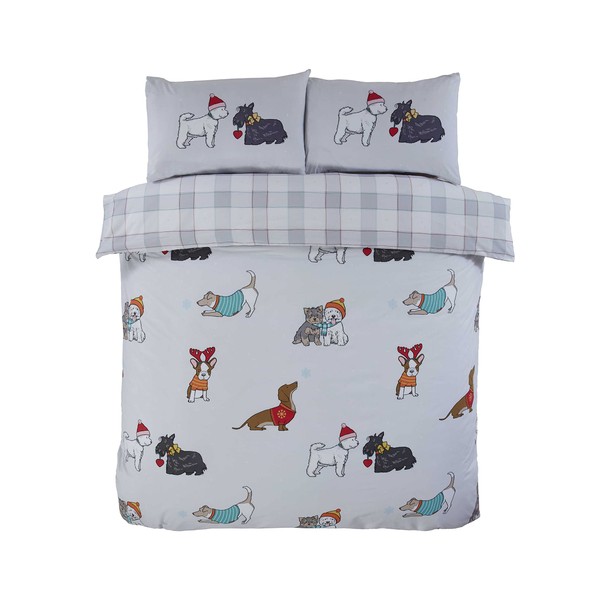 - Featuring a soft grey and white checkered pattern reverse side, this Christmas duvet set offers you two great designs for the price of one. Snuggle up and keep warm in this adorable bedding this winter season.