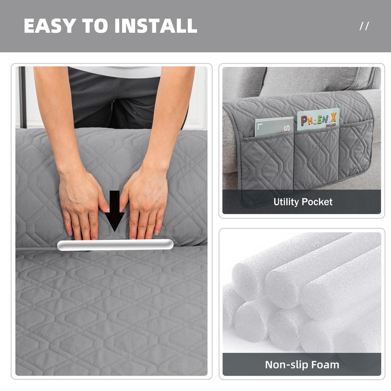 - [Easy to Install]: There are 4 foam sticks. Please insert the foam sticks into the gap between the armrest and the seat, and between the backrest and the seat, so as to better fix them and reduce sofa cover's falling off.