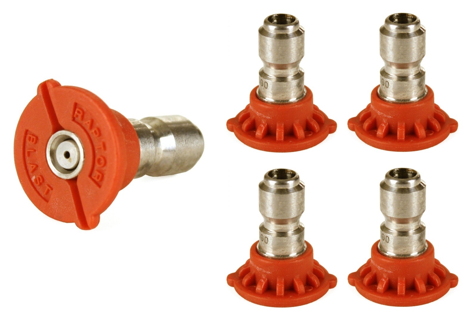 Raptor Blast Set of 5 Raptor Blast 1/4" Stainless Steel Quick Connect Red 0 Degree Nozzle