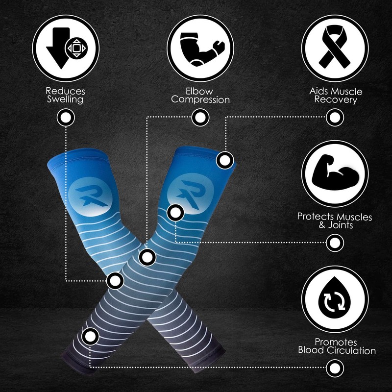 - PERFECT FOR SPORTS – Wearing arm compression support sleeves has shown to be beneficial by helping to reduce the risk of minor muscle and joint pains and aches, aid with circulation and help with reducing inflammation/swelling. Sleeves to cover arms are perfect for use as elbow compression sleeves, as well as football arm sleeves, and for use in other sports, including weightlifting, bowling, baseball, golf, tennis, squash, badminton and other racket sports.