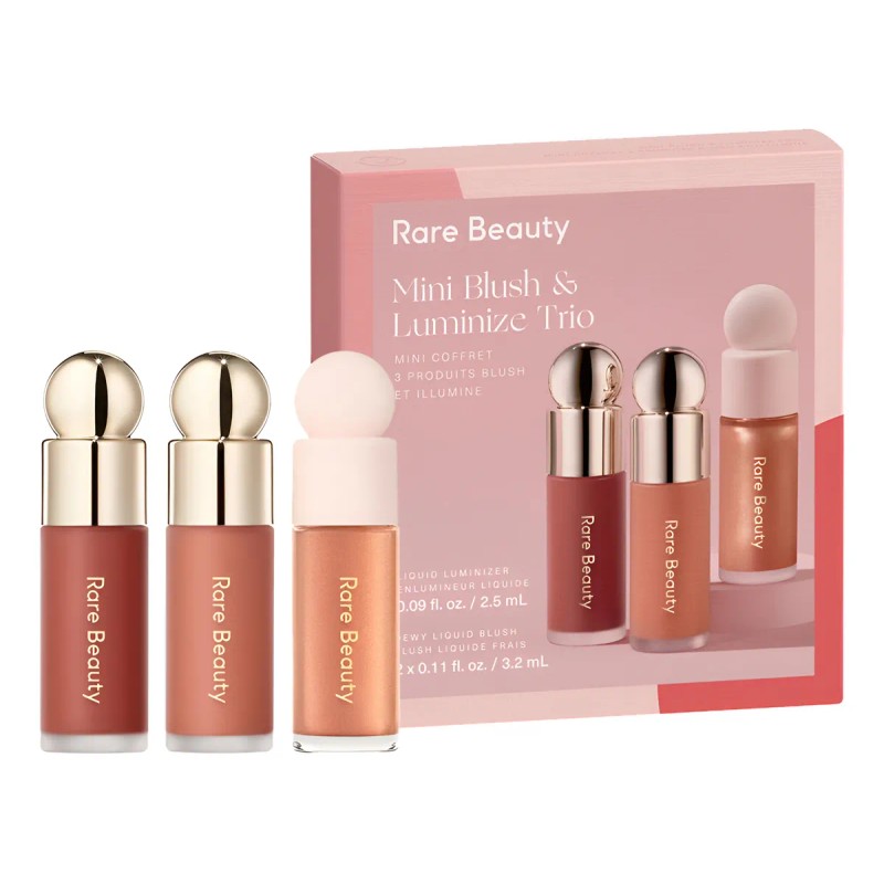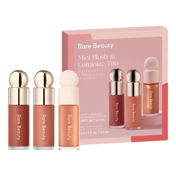 El Rare Beauty Mini Blush & Luminize Trio es un set irresistible que combina lo mejor de la marca: color vibrante y glow natural, todo en un formato mini perfecto para tu cosmetiquera ✨👜. Ideal tanto para fans como para quienes quieren probar la icónica fórmula líquida de Selena Gomez 💫.