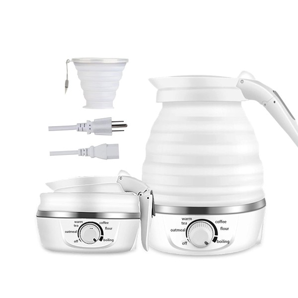 RAREONES 0.6L Foldable Travel Kettle | Portable Electric Tea Kettle with Cup | Temperature Control & Auto Keep Warm,Collapsible & Folding Small Kettle for Boiling Water