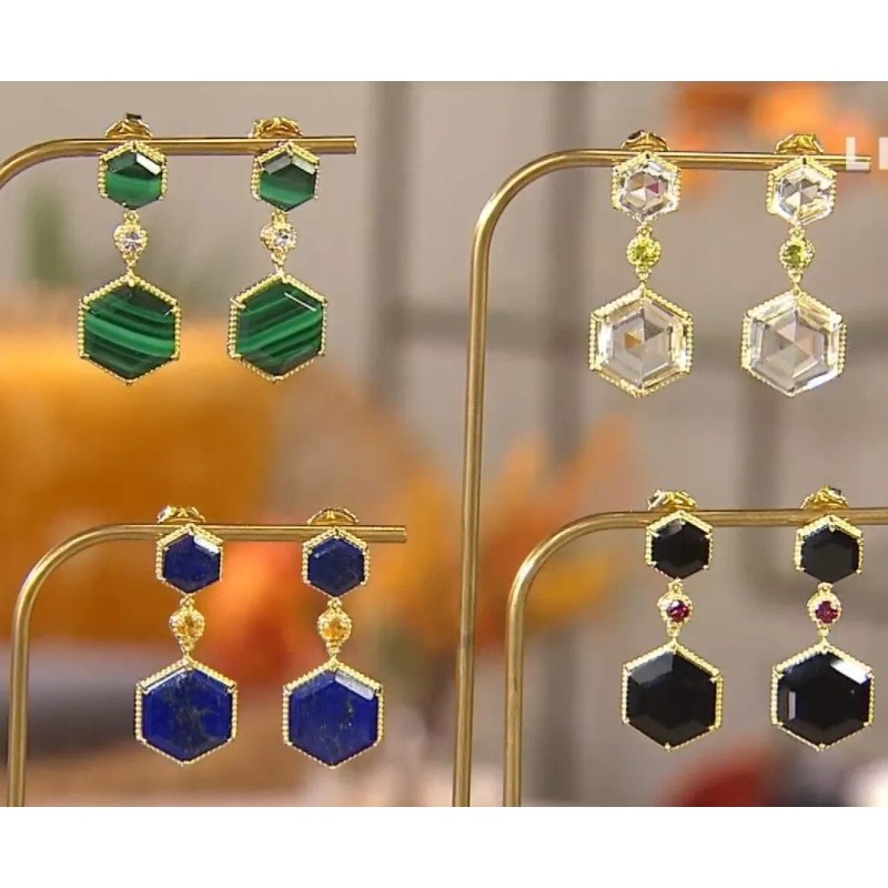 Rarities Gold-Plated Hexagon Black Onyx & Pink Garnet Drop Pierced Earrings-NWT