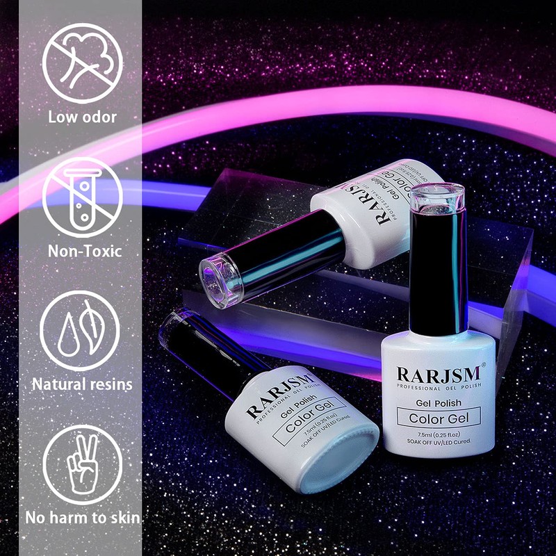 - 【UNIQUE HOLOGRAPHIC CHAMELEON EFFECT】RARJSM gel nail polish set combines multiple effects like classic holographic glitter shades and finishes to create a chameleon color changing manicure.Color Changes depends on the lighting and the angle that you or anyone is looking at them.