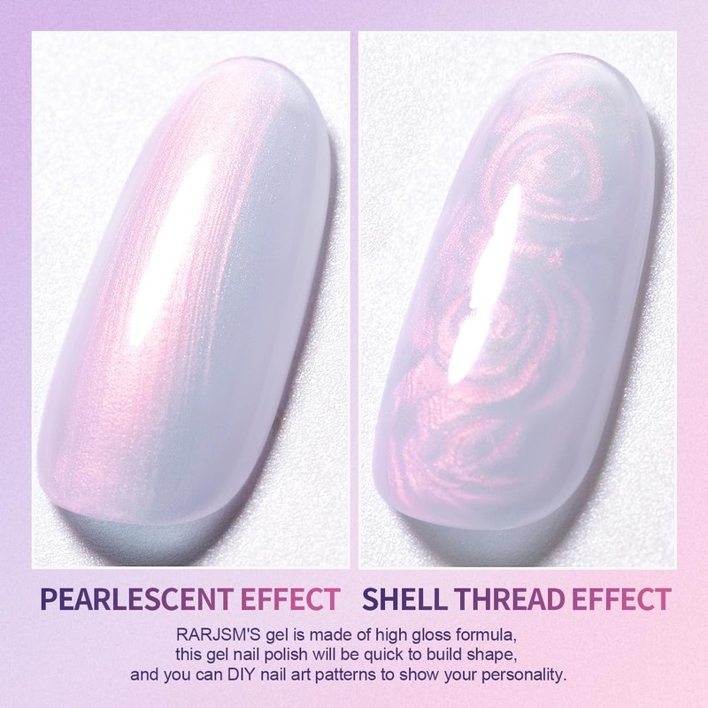 RARJSM Pearl Gel Nail Polish,Purple Pearlescent Gel Polish,Shell Glitter Red Shimmer Iridescent Mermaid Nail Gel Polish Soak Off LED UV Curing Requires Swirl Thread Effect DIY Manicure Use 7.5ML