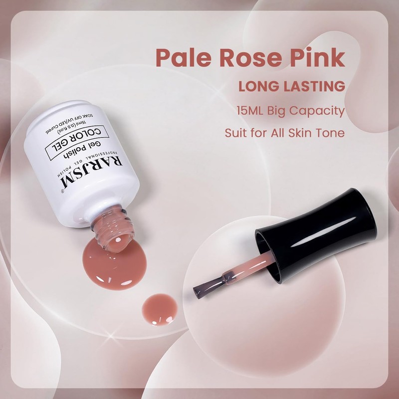 - EASY APPLICATION LONG LASTING:This nude pale rose pink color transparent pink gel polish is made with with natural resin ingredients and a non-toxic formula,so this gel polish won't cause smudges cracks, or chips.It can last for 21+ days with perfect shine under proper application