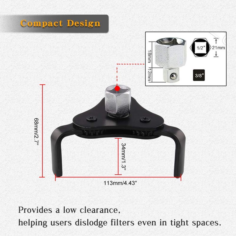 - COMPACT DESIGN】This oil filter remover provides a low clearance, helping users dislodge filters even in tight spaces.