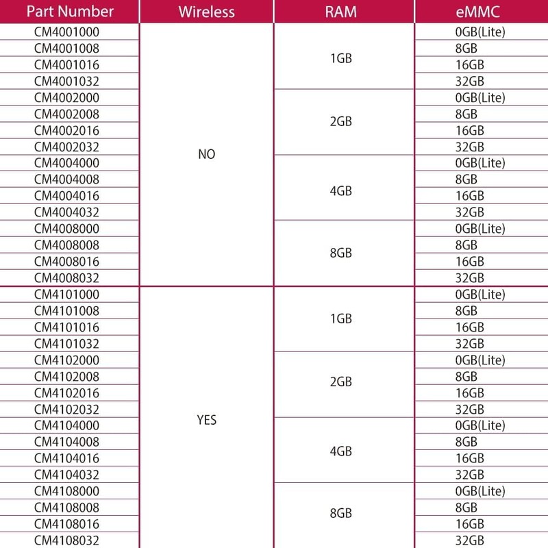 - Raspberry Pi Compute Module 4 8GB RAM 32GB eMMC CM4108032 comes with Gigabit Ethernet, 2.4GHz and 5.0GHz IEEE 802.11b/g/n/ac wireless, Bluetooth 5.0, BLE, with onboard and external antenna options.
