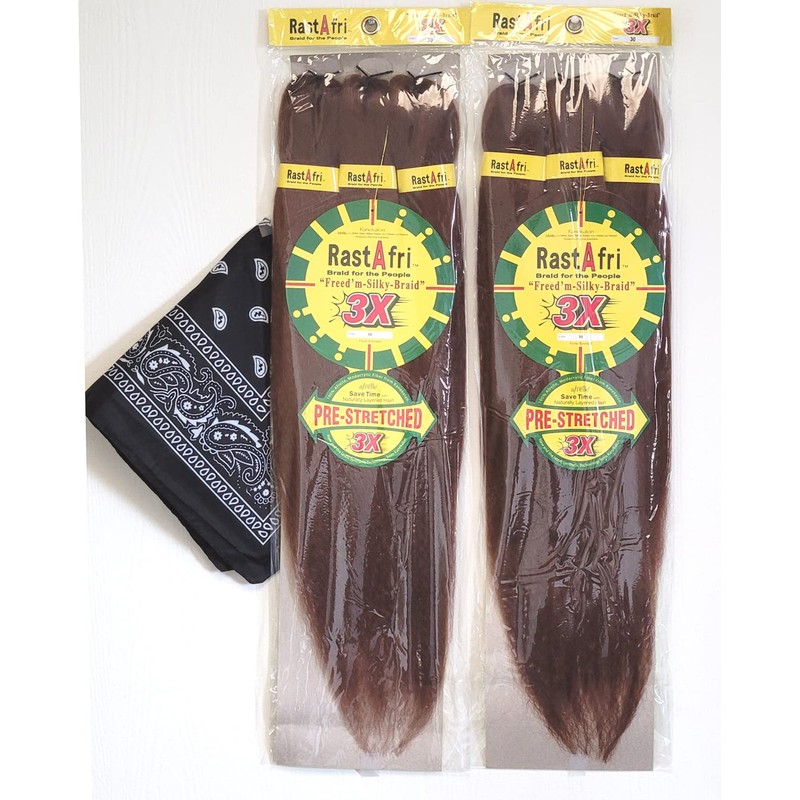 RastAfri Pre-Stretched Silky Braiding Hair 3X with Bandana - 2 Packs (#30)