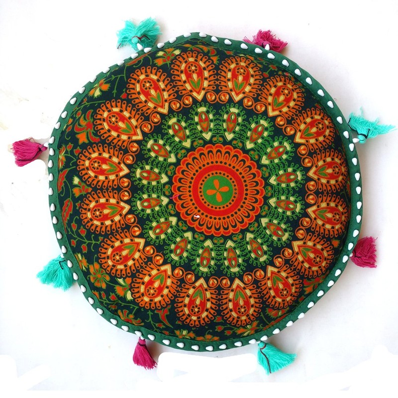 Rastogi Handicrafts Bohemian Ombre Yoga Decor Cushion Cover Round Meditation - Indian Cotton - Hand Block Printed Set of 5