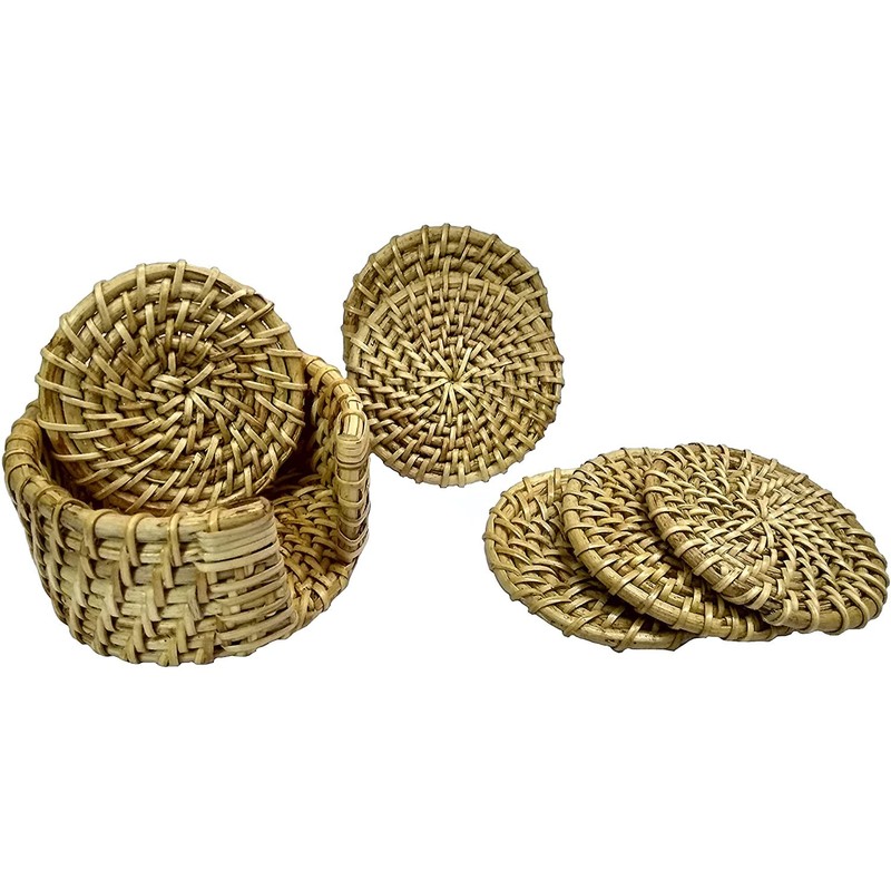 Rastogi Handicrafts Handmade 6 Piece Rattan Coasters - Base Plates & Natural Hot Pads Pot Eco-Friendly Cup Dishes Insulated Holder 4.5" (LHD-1218-A)