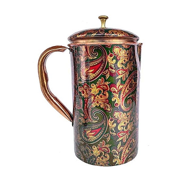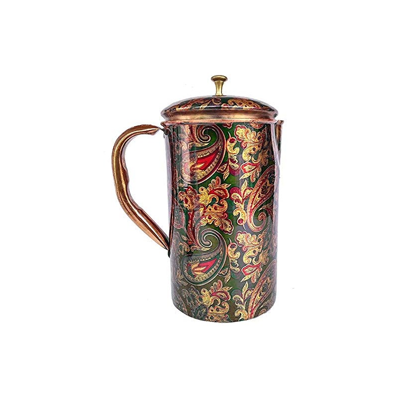 Rastogi Handicrafts Pure Copper Jug Screen Printed pitcher (1 Pitcher)