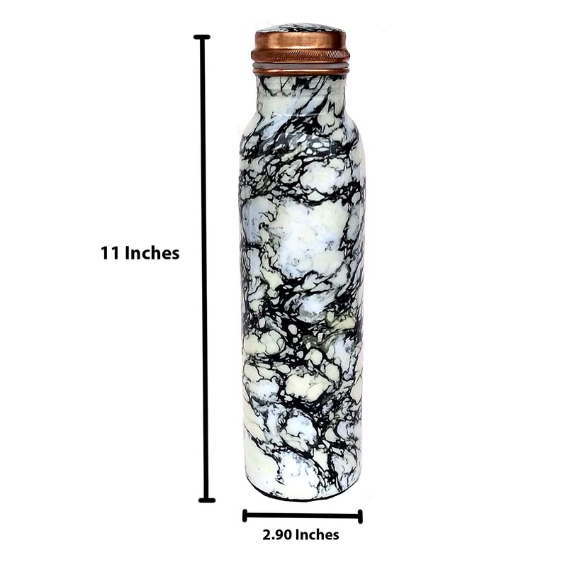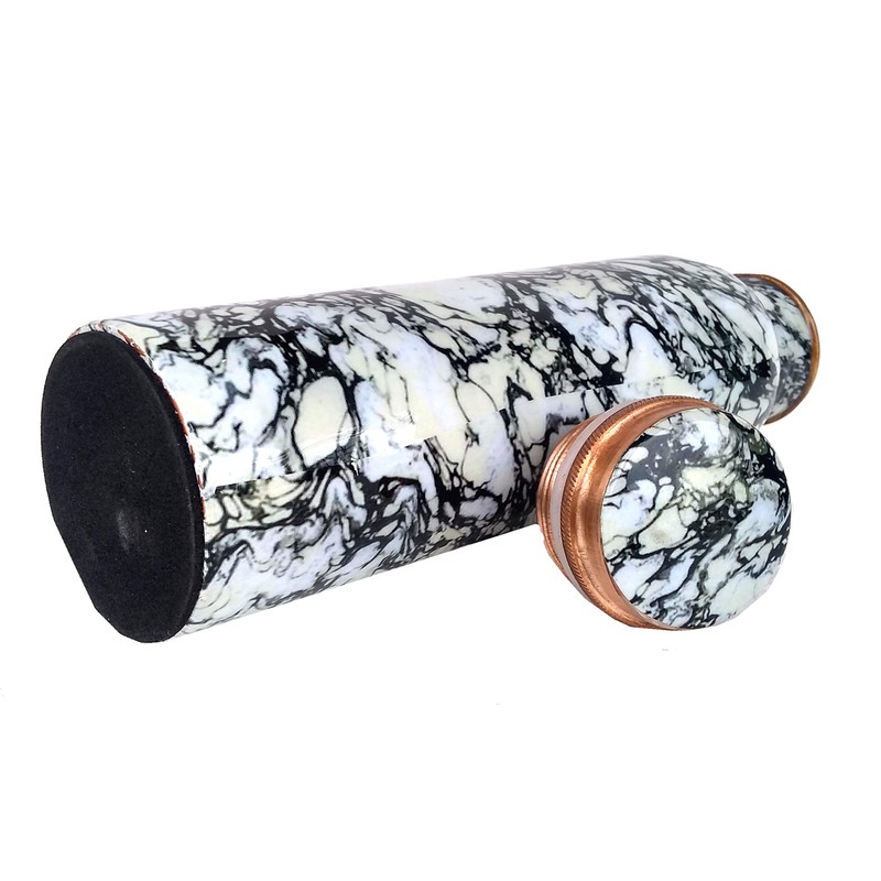 Rastogi Handicrafts Pure Copper Water Bottle Screen Printed 950ml B&W Print