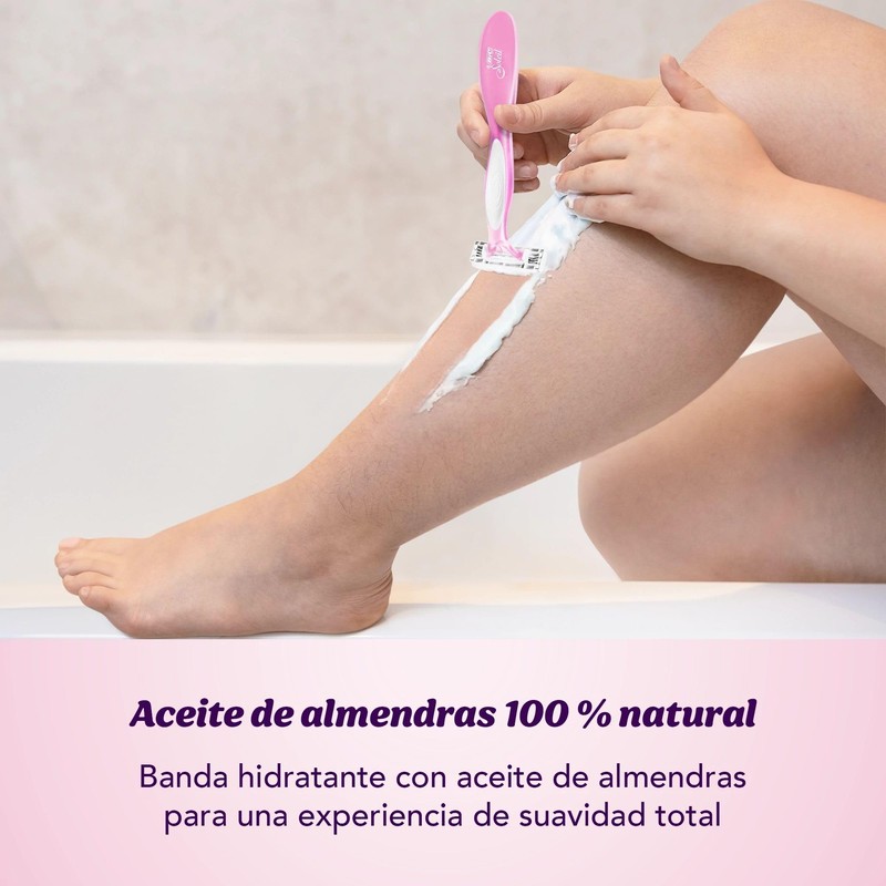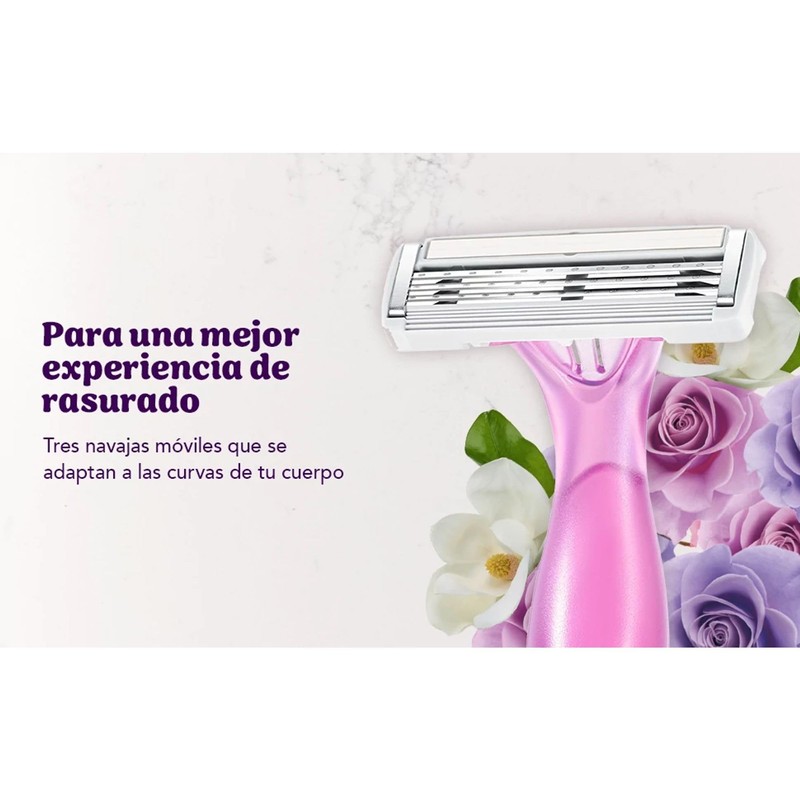 Rastrillo BIC Soleil Escape Rosa Magnolia para Mujer Banda Hidratante con Aceite de Almendra Tres Navajas Móviles que se Adpatan a tu Cuerpo 3 Piezas
