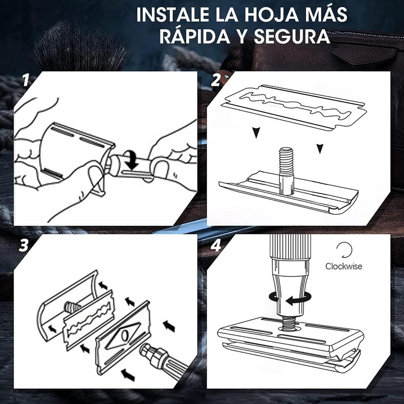 - Higiénico y fácil de Usar - Tu rastrillo además de dejarte un rasurado fino, protegerá tu piel de irritaciones! Para colocar o cambiar tus navajas de doble filo es muy sencillo! Solo deberás rotar la parte superior. Ya que la parte superior este abierta, deberás colocar cuidadosamente tu navaja y listo