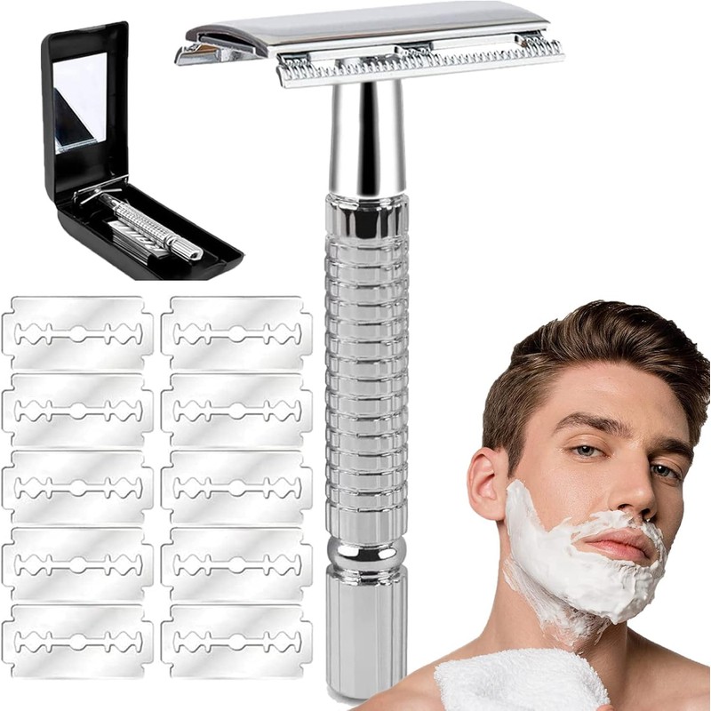 - El diseño clásico de maquinilla de afeitar de seguridad de doble filo es duradero, fácil de limpiar y fácil de usar.